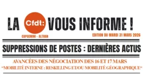 Voici le deuxième tract de la CFDT de Capgemini après les premières réunions de négociation sur le Projet d’Adaptation des... Lire l'article
